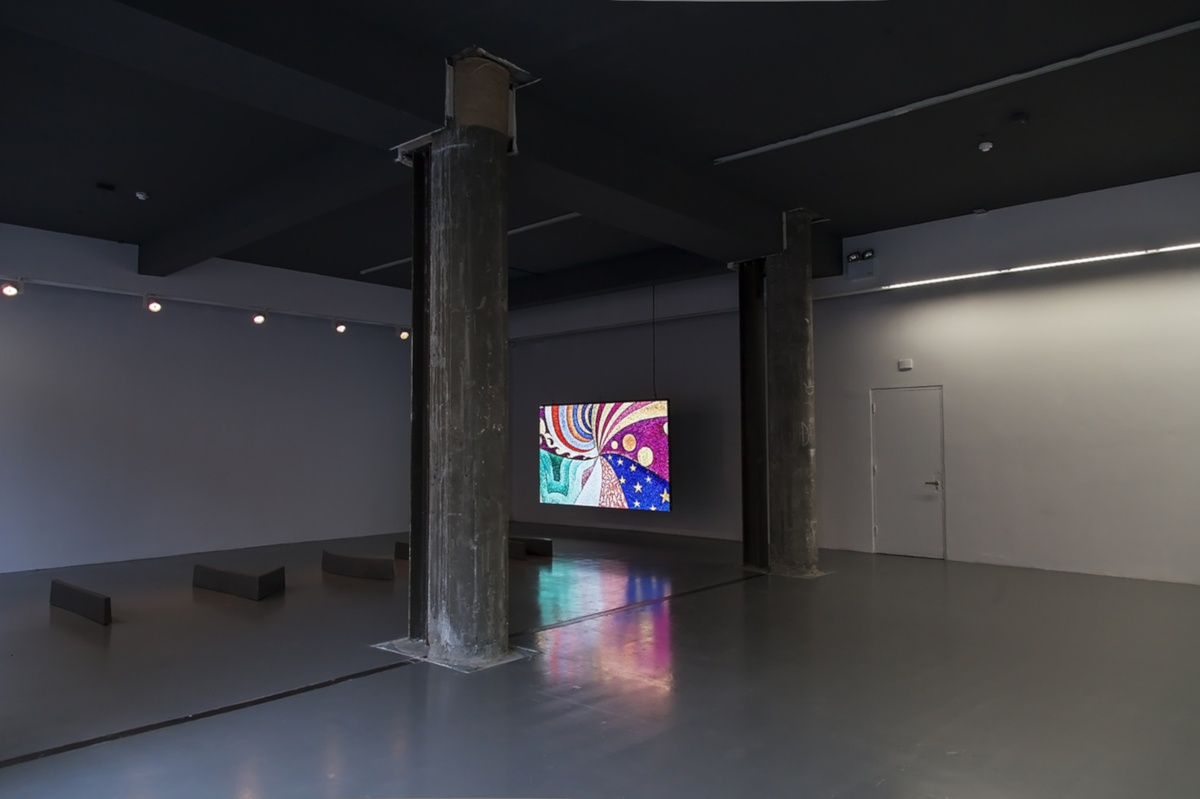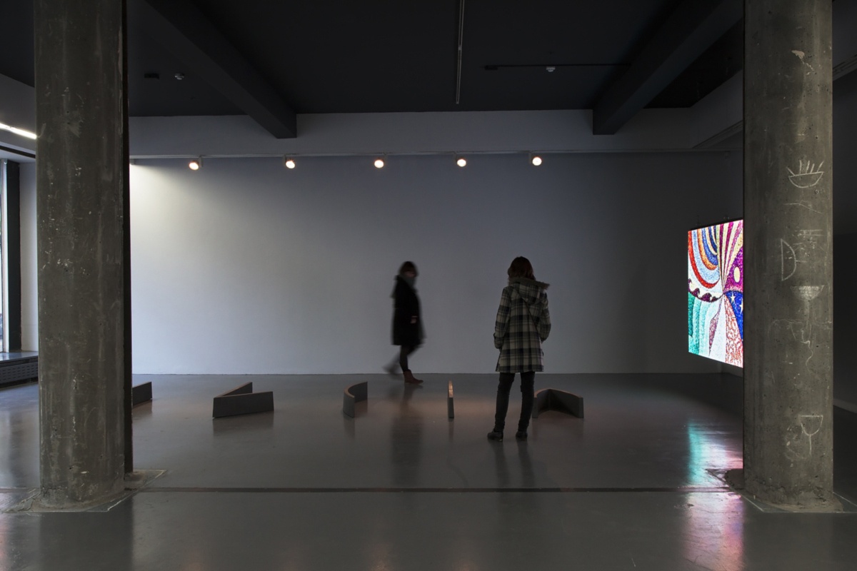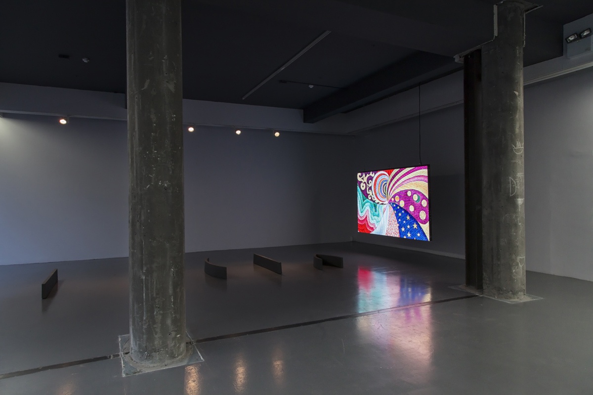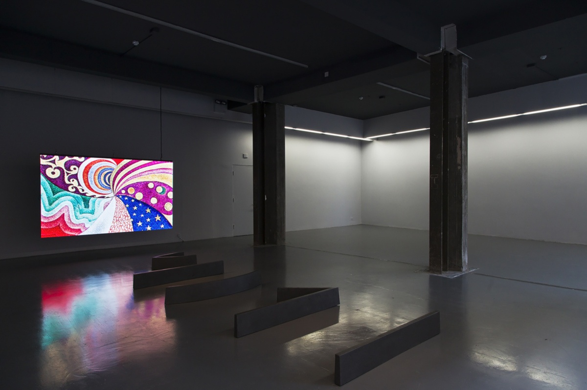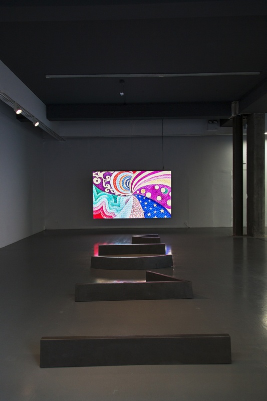 Intrigued by neo-impressionist technique and particularly by Paul Signac’s anarchistic Utopian vision and decorative propaganda, Fernandes attempts to activate once again this aesthetic language, which is derived equally from a study on the sciences of perception (as we would usually approach it), and an aesthetic gesture attacking social structures intended to inspire revolution. For this exhibition, Fernandes presents us with a LED video wall underlining the potentiality of form as action, with the backdrop of Signac’s painting spiraling continuously around its fulcrum.