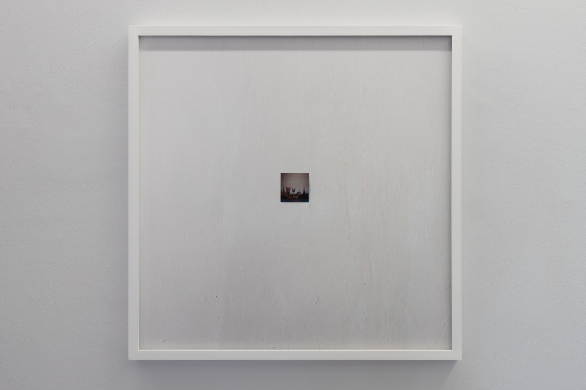 In this exhibition, Edwards specifically references such a moment from his youth. These works consider inherited absences and subtleties of character passed down through generations, whether through genetic or psychological disposition. Edwards returns to a profound visual memory of his grandfather throwing away his father’s darts trophies in a black bin bag, recalling the unease and upset caused by this abrupt removal of such personal objects symbolic of skill and achievement. The trophies (comprising shields and plinths with figurines) are represented in a grainy square snapshot from the 1980s, rephotographed on the artist's studio wall, a sparse white workspace, removed from the warmth of the family home (Dream of Him (2010)).