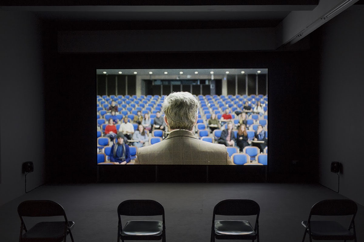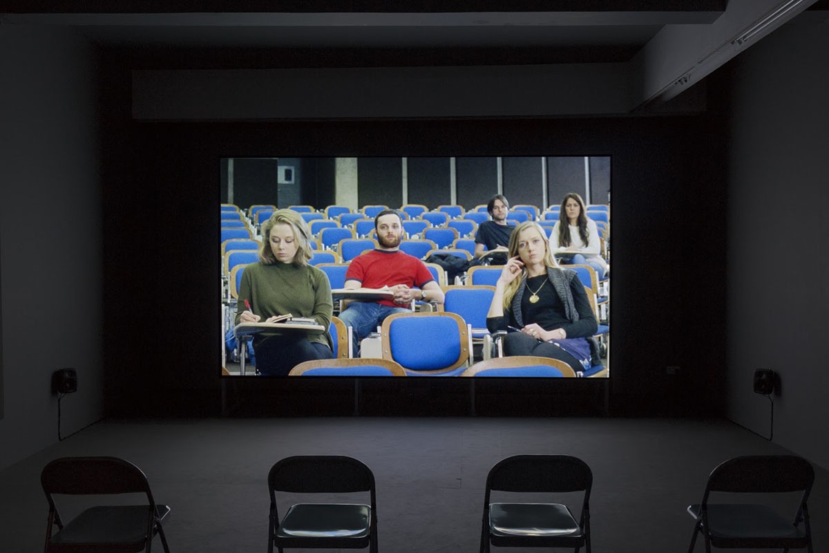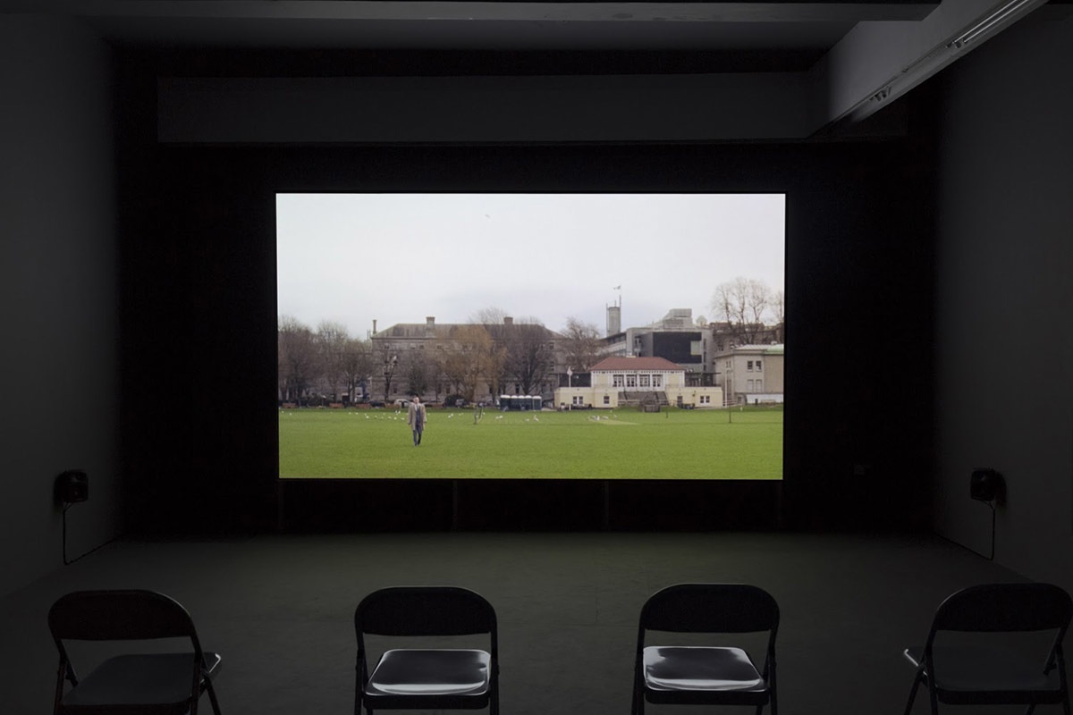The film was shot entirely on the grounds of Trinity College Dublin, using the diversity of architecture within Trinity’s walls as a backdrop and metaphor for the last 100 years of Irish history. Taking a number of overlooked episodes in Irish history as its starting point, the film works along a fragmented narrative which sees unexplained actions taking place in academic and historical surroundings. Clarke grounds these episodes in the political present, so that they function as commentaries on the causes, effects, and ongoing ramifications of the past on the current political climate. Visually and thematically referencing the tropes of post war European cinema, Clarke blurs real and fictional stories to create film with a complex palimpsest of narrative development, compelling characters and mysterious events.