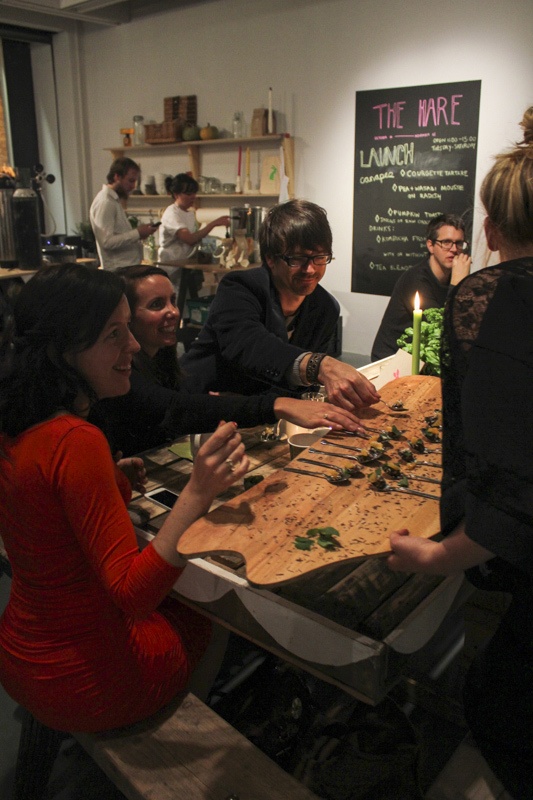 The Hare, a project by artist Fiona Hallinan and chef Katie Sanderson, is a temporary kitchen in the gallery of Temple Bar Gallery + Studios which will provide sustenance to artists and gallery visitors throughout the course of The Worker's Cafe. The Hare will work with alternating guest chefs including artists involved in Worker's Cafe.