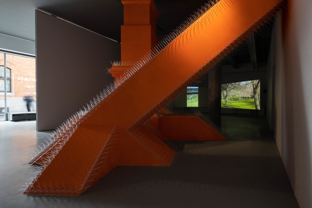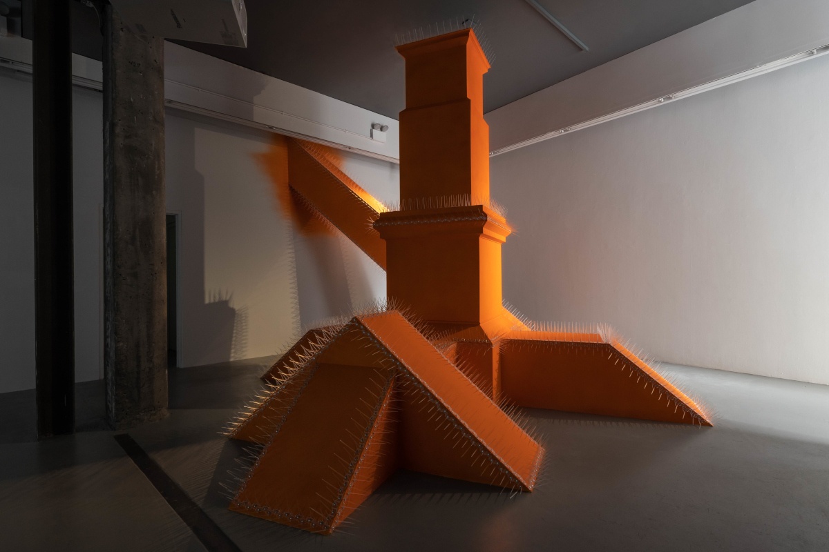 Marcel Vidal’s monolithic sculpture resembles the form of an empty plinth; a symbol that presents a connection to the removal of imperial monuments in Ireland’s history, and more recent protest movements that challenge commemorative sculpture. Other dominant structures in the cityscape are brought to mind, including artworks in the corporate sector that assert wealth, prestige and power. Such artistic monuments are frequently utilised in unintended ways by the general public, and as a result are further isolated from their original role as artworks through structural revisions by local councils or management companies. Vidal’s ominous sculpture imposes on the public space of TBG+S and highlights the redundancy and vulnerability of oppressive, exclusionary architectural methods.