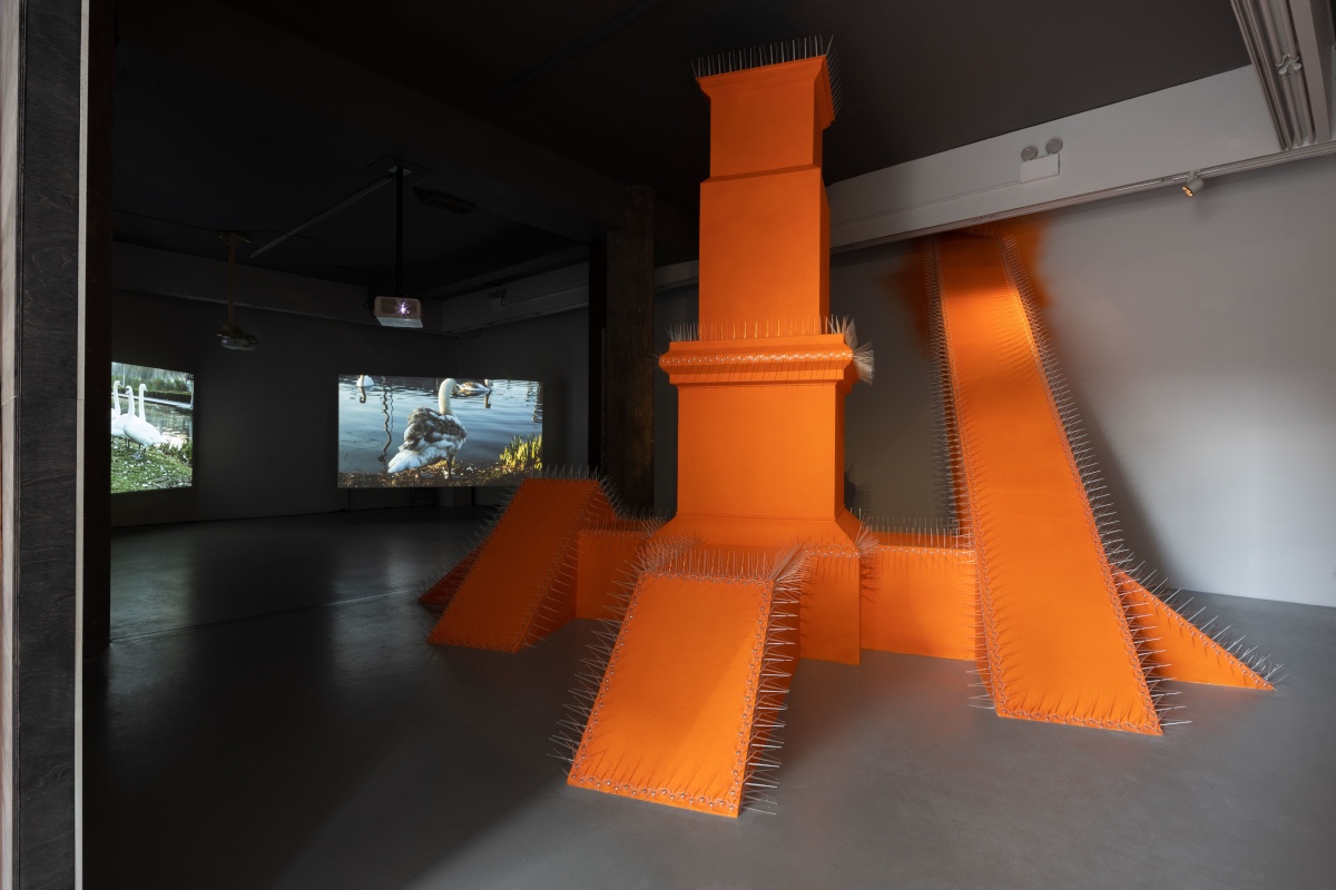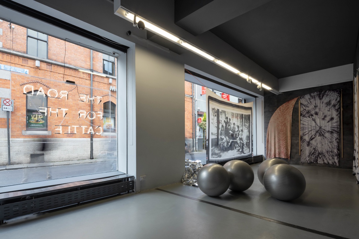Conversations with the artists began as a response to the city of Dublin in a state of adjustment during our recent times of isolation, distance and limited movement. Each artist has examined different elements of the city that keep communities enriched, as well as barriers and limitations that prevent meaningful connection with others. The artists consider the opportunities for exchange in both public and private spaces, and there are instances in which their individual research and observations interrelate. This conveys a shared response to the locality of the gallery and the artists’ place of work in the studios. Reflecting our urban environment, the exhibition features clashes and divides in aesthetic, scale and perspective. Communal, comforting imagery is set cheek by jowl with oppressive and harsh forms, just as the contemplative gallery faces the erratic streets of Temple Bar. The fundamental studio processes of conversation and reevaluation will continue as the show unfolds, and some works will be completed and presented throughout the exhibition; by film, readings and publication.