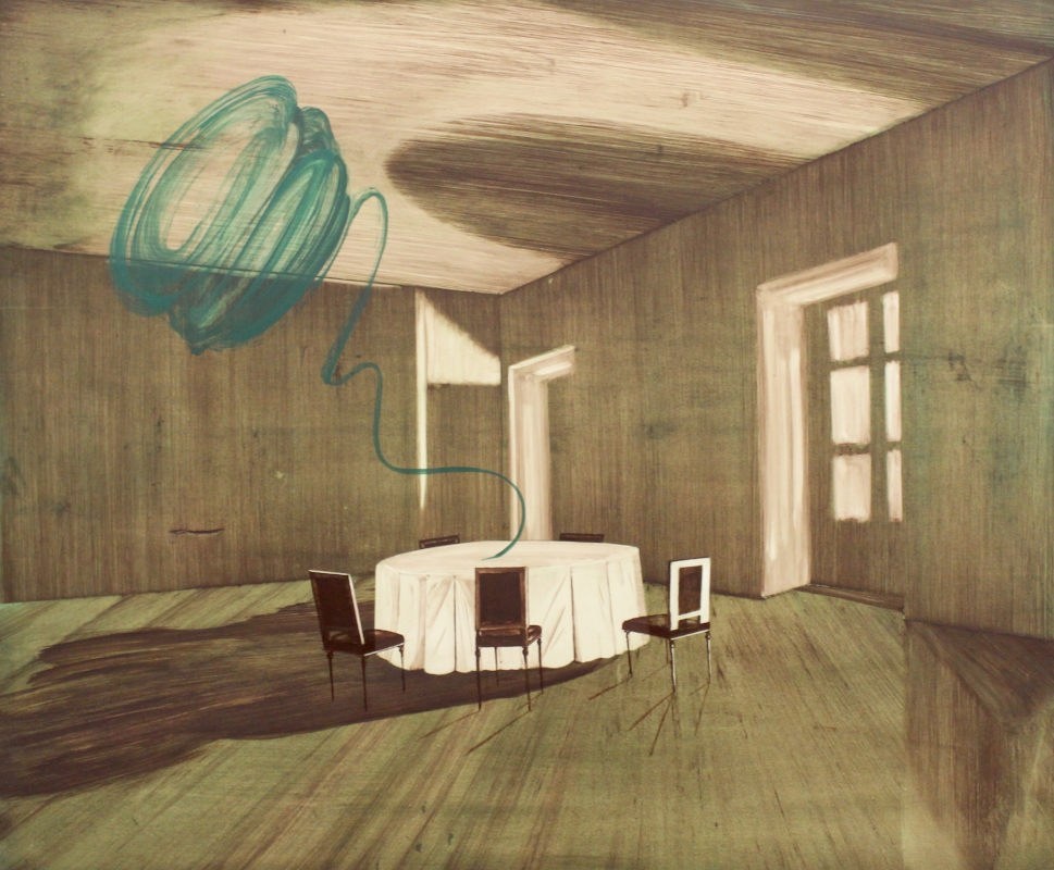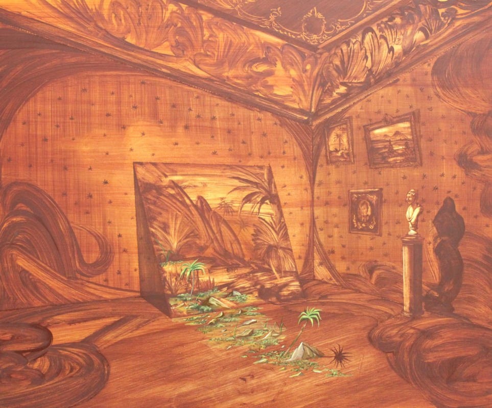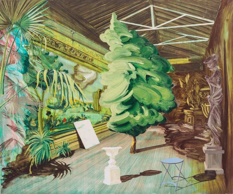 “One major development is that Eager Maher is now much more a painter than he was. Not that he couldn’t use paint – he certainly could – but now he is at ease with the medium, and able to use its characteristics in shaping his work rather than merely fleshing out an image. Witness especially Annexe, Spool and Thicket, all of which use the quality of brush strokes, the translucency of glazes, and selective colour to great effect. Add Fruit Tree, in which a resplendent interior is littered with felled trees, and you have the four best works in a consistently impressive show, a terrific quartet”