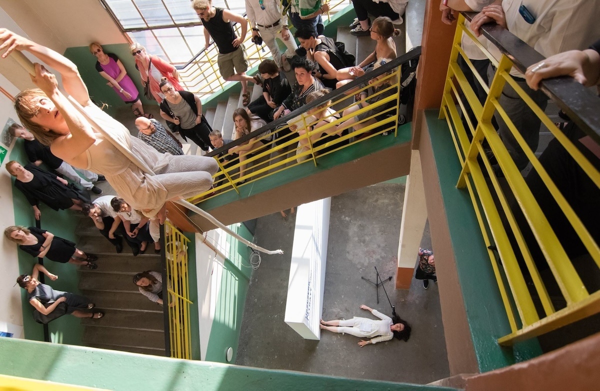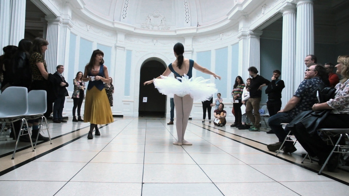Ella de Búrca carefully combines performance, sculpture and painting to reflect on meaning-making and female histories, creating humorous and poetic experiences that often materialise as temporary immersive installation. Especially interested in how we perform as viewer and how this overlaps with ‘the male gaze,’ de Búrca researches, layers and recontextualises art historical moments to find reference in her lived experience.
