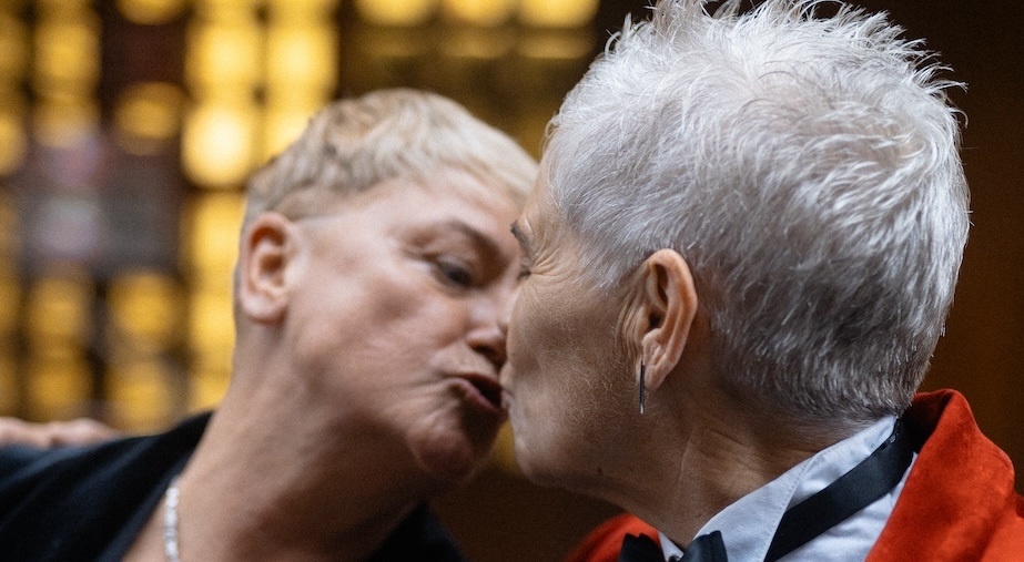 Prom Night Portraits features an array of Prom Night guests as they celebrated and reclaimed this significant moment at Street 66 in Dublin. Hosted in partnership with Outhouse at Street 66, ‘Prom Night’ was an inclusive event for older LGBTQIA+ individuals, and those who may not have been able to participate when they were younger, to don their finest attire with a partner of their choice and step back in time to recreate the magic of prom. Iconic drag artists Alan Amsby (AKA Mr Pussy) and Tina D. Parton performed, with a special photo-booth by photographer Enda Burke, The Wild Geeze, and music by DJ Ruth Kavanagh. Prom guests received lapel flowers from Adonis Flowers on their way in, as well as Prom Night cupcakes.